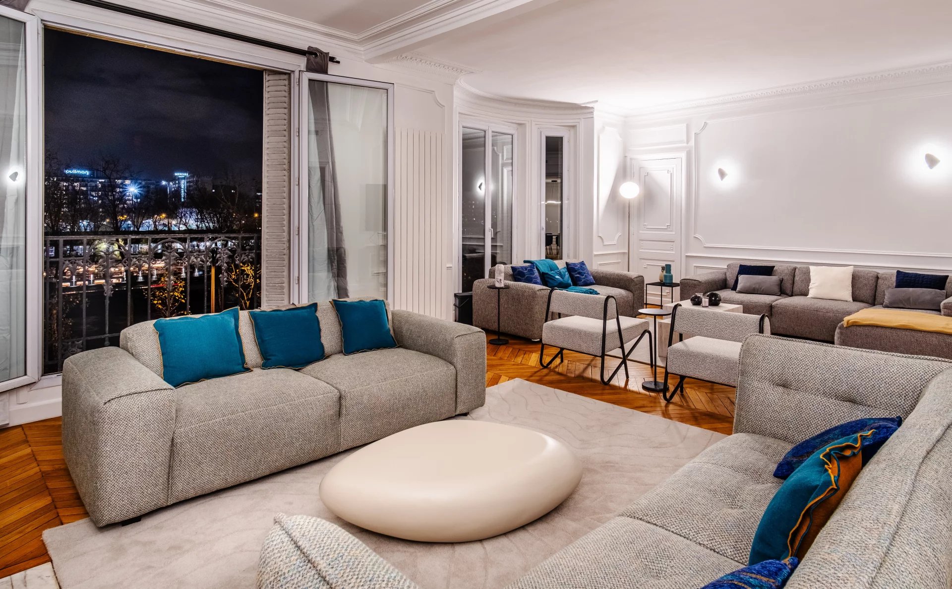 Avec une vue imprenable sur la tour Eiffle, dans un magnifique immeuble en pierre de taille construit en 1925, au 3eme étage avec ascenseur. 22Estate vous propose un appartement d'exception loué meublé entièrement rénové et climatisé, donnant sur les quai de seine et offrant une vue sublime sur la Tour Eiffel. Cet appartement se compose : d'une galerie d'entrée,ouverte sur la salle à manger d'un double séjour avec balcons vue Tour Eiffel et sur la seine, d'une cuisine aménagée et totalement équipée, de quatres trois chambres dont 3 masterbedrooms avec dressing plus une quatriere chanre avec sa salle debain atenante, un toilet invité complete le bien.
